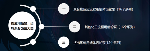 聚合物反應(yīng)流程用熔體齒輪泵、化工流程用熔體齒輪泵(包括釜底出料泵、管路增壓泵)有16個系列,逾400個規(guī)格;