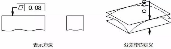 示例:公差帶是位于距離0.08mm的兩個(gè)平行平面之間的區(qū)域。