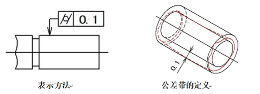 示例:公差帶是半徑差為公差值0.1mm的兩個(gè)同軸圓柱面之間的區(qū)域。