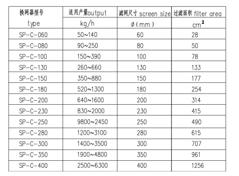 換網(wǎng)器規(guī)格型號(hào)及參數(shù):